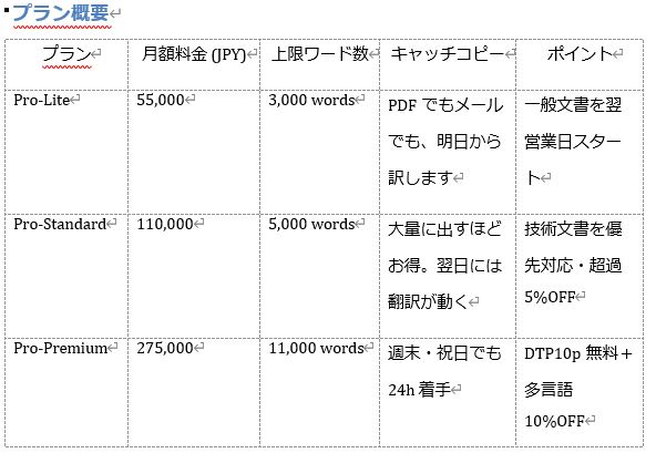 - Lite:55,000 円(3,000 w まで)超過時翻訳 22円/英語ワード